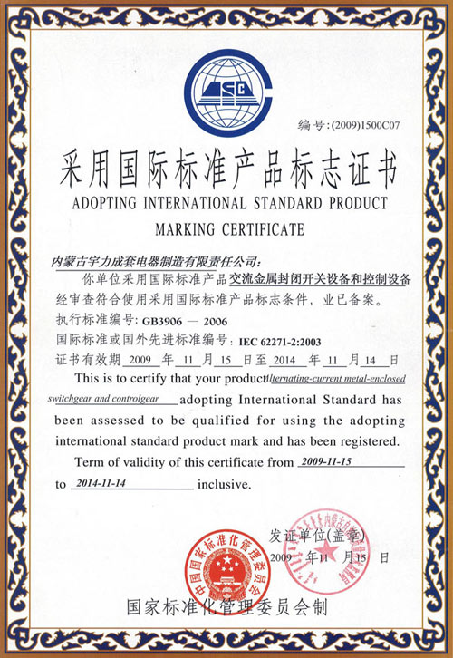 采用國際標(biāo)準(zhǔn)產(chǎn)品標(biāo)志證書
