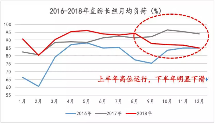 綜合來看,2018年直紡長絲負荷雖仍維持高位,但下半年出現(xiàn)明顯下滑趨勢,且春節(jié)期間預計檢修力度將有所加大,后市負荷高位運行難度加大。