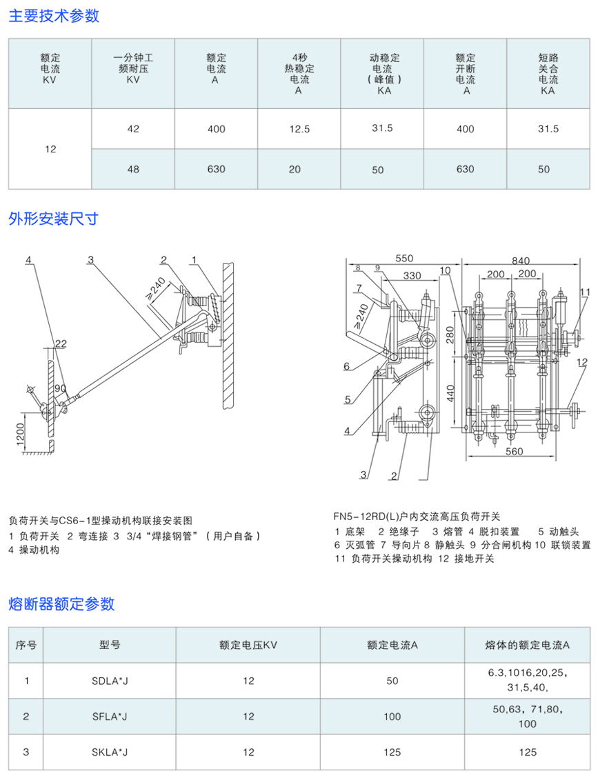 FN5-12系列戶內高壓負荷開關及熔斷器組合