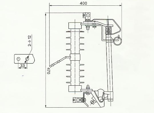 熔絲管兩端的動觸頭依靠熔絲(熔體)系緊,將上動觸頭推入"鴨嘴"凸出部分后,磷銅片等制成的上靜觸頭頂著上動觸頭,故而熔絲管牢固地卡在"鴨嘴"里。當短路電流通過熔絲熔斷時,產(chǎn)生電弧,熔絲管內(nèi)襯的鋼紙管在電弧作用下產(chǎn)生大量的氣體因熔絲管上端被封死,氣體向下端噴出,吹滅電弧。由于熔絲熔斷,熔絲管的上下動觸頭失去熔絲的系緊力,在熔絲管自身重力和上、下靜觸頭彈簧片的作用下,熔絲管迅速跌落,使電路斷開,切除故障段線路或者故障設(shè)備。