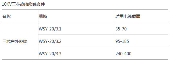 3芯,廣泛用于8.7/15KV及以下電壓等級交聯(lián)電纜或油浸式電纜終端。與傳統(tǒng)的電纜附件相比,它具有的優(yōu)點:體積小,重量輕,安全可靠,易于安裝。