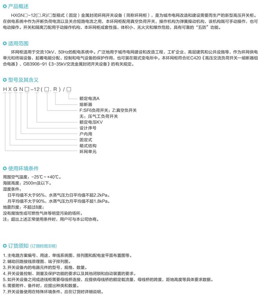 HXGN口-12(口.R)/口型箱式(固定)金屬封裝環(huán)網(wǎng)開關(guān)設(shè)備