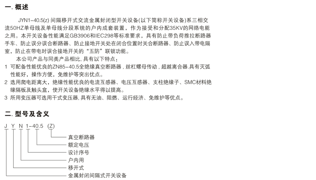 JYN1-40.5(Z)型間隔移開(kāi)式交流金屬封閉型開(kāi)關(guān)設(shè)備